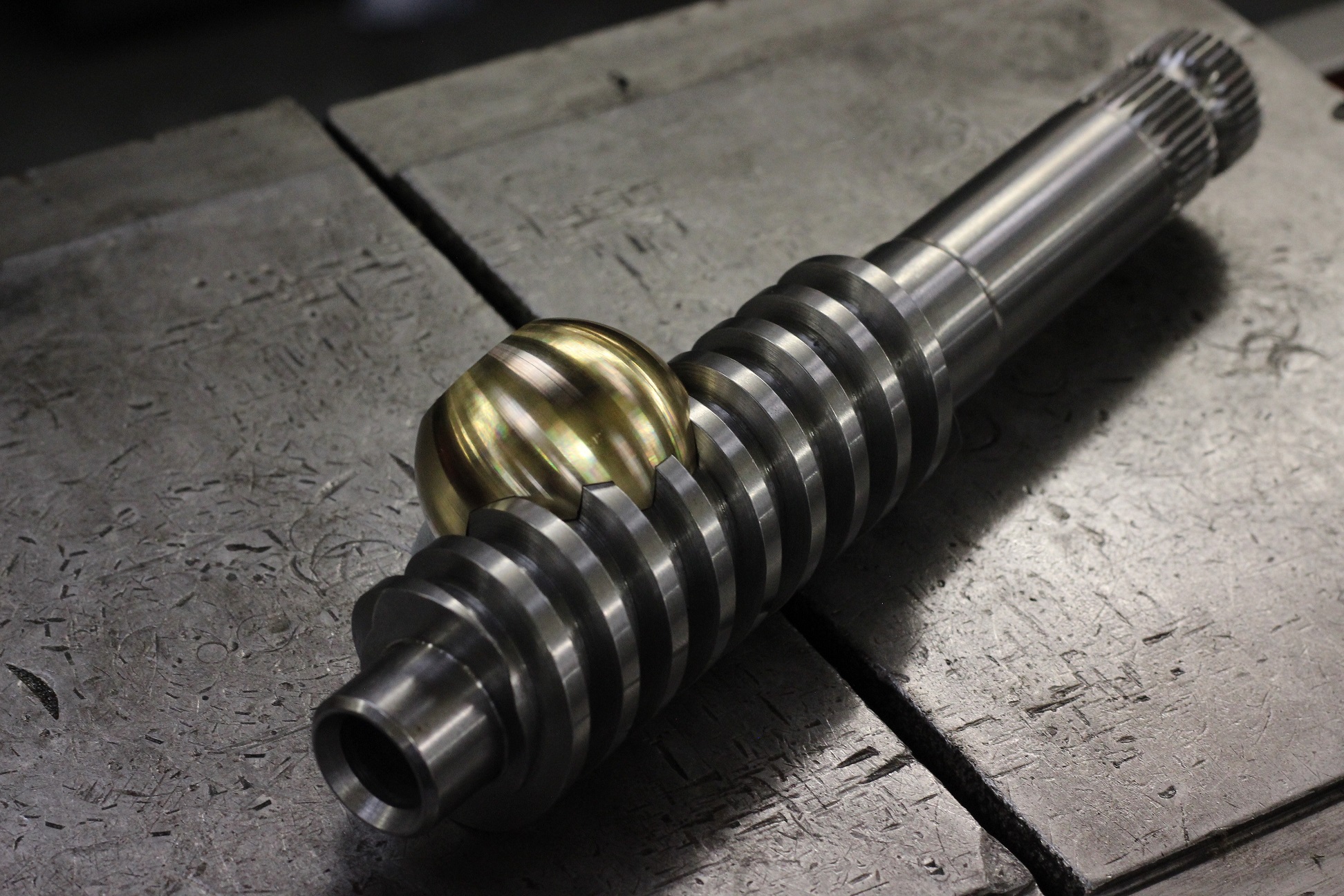 Parts for a one-off steering box for a T52 Bugatti. The form on the worm and nut has to be perfect otherwise you will feel play in the steering. The ball was a little tricky to make, but we have some very clever engineers.