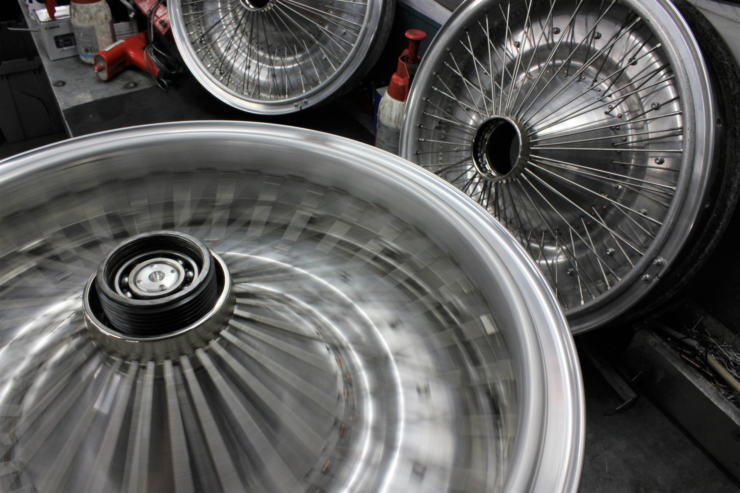 This wheel is the prototype from a batch we made four years ago for a company in Ingolstadt. A lot of the original magnesium wheels got damaged due to the hard punishment they were put through in period, and there is a lack of spare wheels. We were asked to make these so they could still demonstrate their original cars.